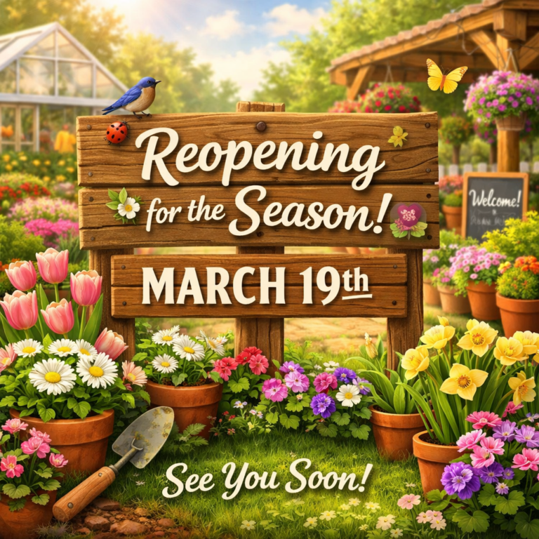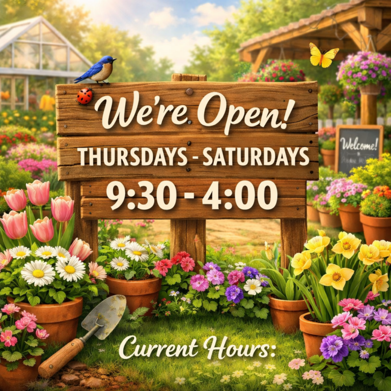Although we’re always working around the nursery, we have limited retail hours. We typically open for the season in March with weekend operating hours.